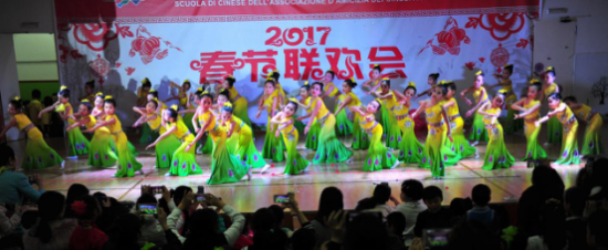 联欢会上师生们载歌载舞,以优美的舞姿、甜美的歌声,舞出了海外华人对美好幸福生活的尽情尽兴,唱出了中华儿女对祖国和我们第二故乡—意大利的赞美热爱,充满着喜庆和喜悦,为大家献上了一台内容丰容,多姿多彩的文艺节目,共庆春节,共贺我们伟大的祖国繁荣昌盛。