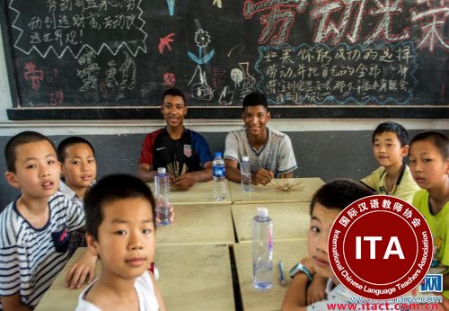 那天,接待我们的世界名中学联盟复旦中学的家长们开车带我们从繁华的上海市中心驶出,不到一个小时,我们便来到了嘉定菊园六里小学。在这里我们跟一群农民工随迁子女一起度过了不一样的一天。对于我的中文学生来说,这是一次不同以往的体验。在一个没有空调的教室里,我的学生们先要完成他们的第一个任务,就是跟嘉定民间艺术家学习嘉定草编。对于握惯了网球拍、打惯了橄榄球的美国大男孩们来说,用细细软软的黄草编出图案远比任何他们从事过的体育运动都更有挑战性。他们耐下心来,细心体会,一会儿就满头大汗了。然后他们跟小朋友们分组练习,大手拉小手一起编织起一个个圆圆的杯垫,小朋友们也从最初的陌生和羞怯渐渐活跃起来,一个个小脑袋凑了上来, 一边编杯垫一边问问题,“你的家大不大?”“你的学校什么样子?”“你有小狗小猫?”“你会玩什么游戏?”“你为什么去美国?”“你有暑假作业吗?”他们在大哥哥的手机上传看着照片,不时爆出欢快的笑声。在草编活动以后,这几个大男孩和小朋友们一起在树荫下玩“鸭子鸭子鹅”的游戏,教孩子们唱英文歌。在回上海的路上,史柯林告诉我,今天是他最难忘的一天。而从踏上中国的第一天,他就告诉自己一定会回中国,今天的经历让他再次坚定他的想法。