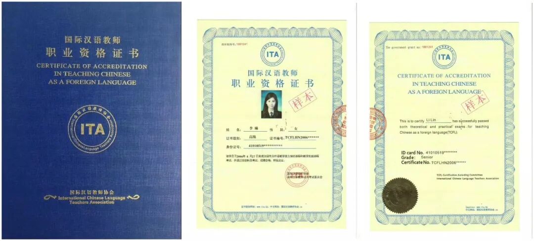 3. 国际汉语教师资格证一证两版,中英文双证。ITA国际汉语教师协会陈老师介绍,凭借ITA证书可申请获得协会人事部国际汉语教师人才库备案,学院档案在ITA与国家人事部全国人才流动中心、国家人才网专业人才库永久性存档。
